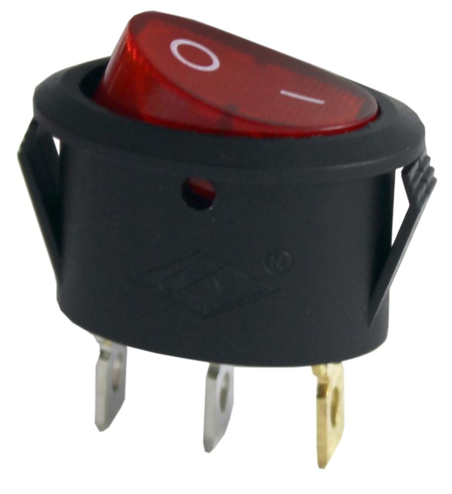 ПЕРЕКЛЮЧАТЕЛЬ ОВАЛЬНЫЙ УСТ.:23*13мм 2-ПОЛОЖЕНИЯ 3PIN ON-OFF С ПОДСВЕТКОЙ КРАСНЫЙ 6A IRS 101-6C