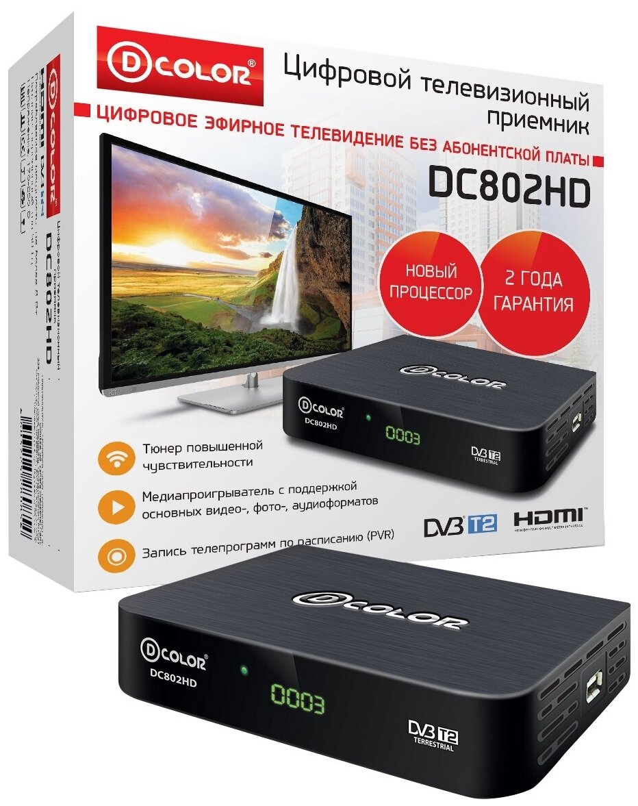 ТВ ПРИСТАВКА ЦИФРОВАЯ DVB-T2 D-COLOR DC802HD