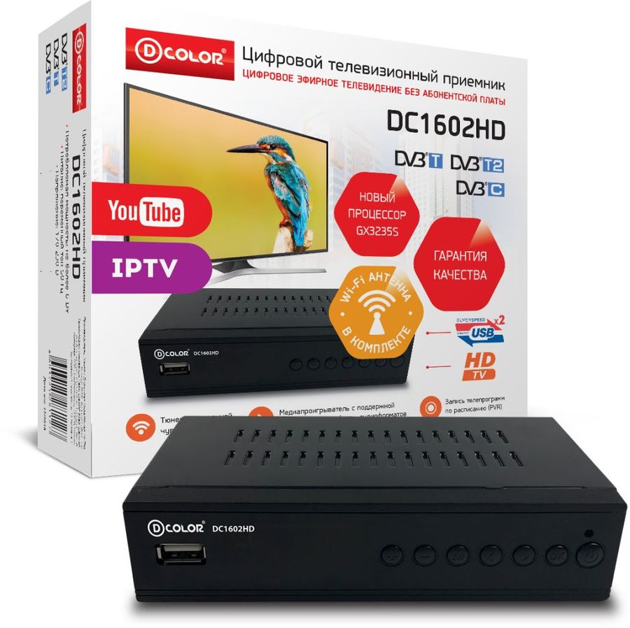 ТВ ПРИСТАВКА ЦИФРОВАЯ DVB-T2 D-COLOR DC1602HD металл/дисплей/кнопки (поддержка Dolby Digital)