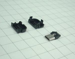 РАЗЪЕМ MICRO USB-B ШТЕКЕР НА КАБЕЛЬ MicroUSB 5BM ПЛАСТИКОВЫЙ КОЖУХ, УГЛОВОЙ, МАЛЫЙ КОЖУХ, ШТЕКЕР 7мм, БЕЗ РЕЗИНКИ
