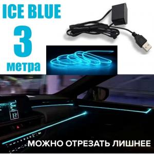 Лента Неоновая крепление в щель 2,3x7,3ммx3м с устройством розжига USB ГОЛУБАЯ