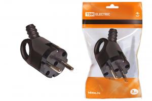 ВИЛКА ШТЕПСЕЛЬНАЯ 220В 16A УГЛОВАЯ ЧЕРНАЯ З/К С УШКОМ TDM
