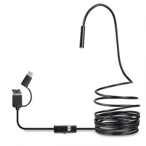 ЭНДОСКОП USB, MicroUSB, TYPE-C ВИДЕО-ЗОНД ANDROID, PC с подсветкой 2м, D7.0mm, кабель мягкий