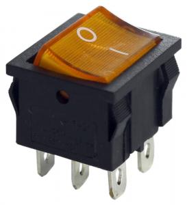 ПЕРЕКЛЮЧАТЕЛЬ УСТ.:22*20мм 2-ПОЛОЖЕНИЯ С/Ф 6PIN ON-OFF 10A SWR-MIRS-202-4 ЖЕЛТЫЙ С ПОДСВЕТКОЙ