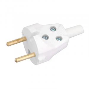 ВИЛКА ШТЕПСЕЛЬНАЯ 220В 6A ПРЯМАЯ БЕЗ ЗАЗЕМЛЕНИЯ (В6-001) с кембриком БЕЛАЯ