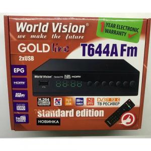 ТВ ПРИСТАВКА ЦИФРОВАЯ DVB-T2 World Vision T644AFm (БЕЗ БАТАРЕЕК AAA*2, T2+C, FM-РАДИО, металл, дисплей, кнопки, встроенный БП, IPTV, Dolby, USB*2, AV-ДЖЕК)