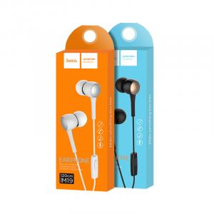 Гарнитура вкладыши Hoco M19 черный, кнопка ответа, 1,2м, угловой разъем