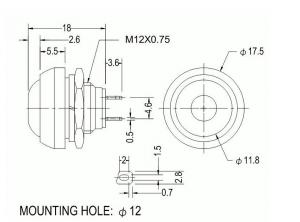 КНОПКА PBS33B Б/Ф НР 2PIN 12мм 250V 1A ЗЕЛЕНАЯ
