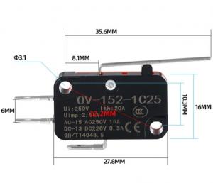 КНОПКА 28*16*10мм рычаг 28мм 3pin-4.8мм VMS15-02N-70G-G / V-152-1C25 / MCS-01-02A