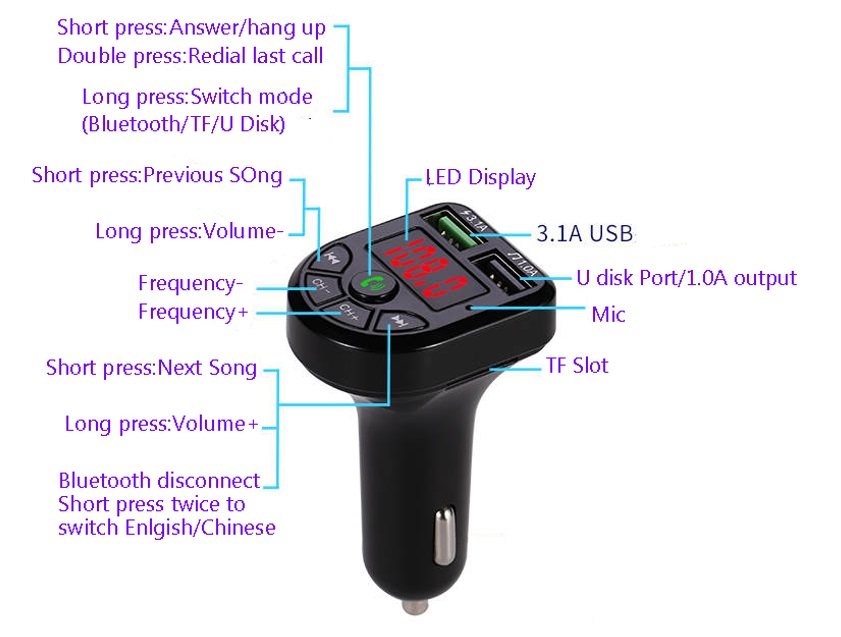 Автомобильный FM модулятор Bluetooth, USB3.0 15W, USB2.0, MicroSD HM06 черный