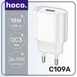 Адаптер питания сетевой 5.0V 2.1A USB*1 HOCO C109A белый