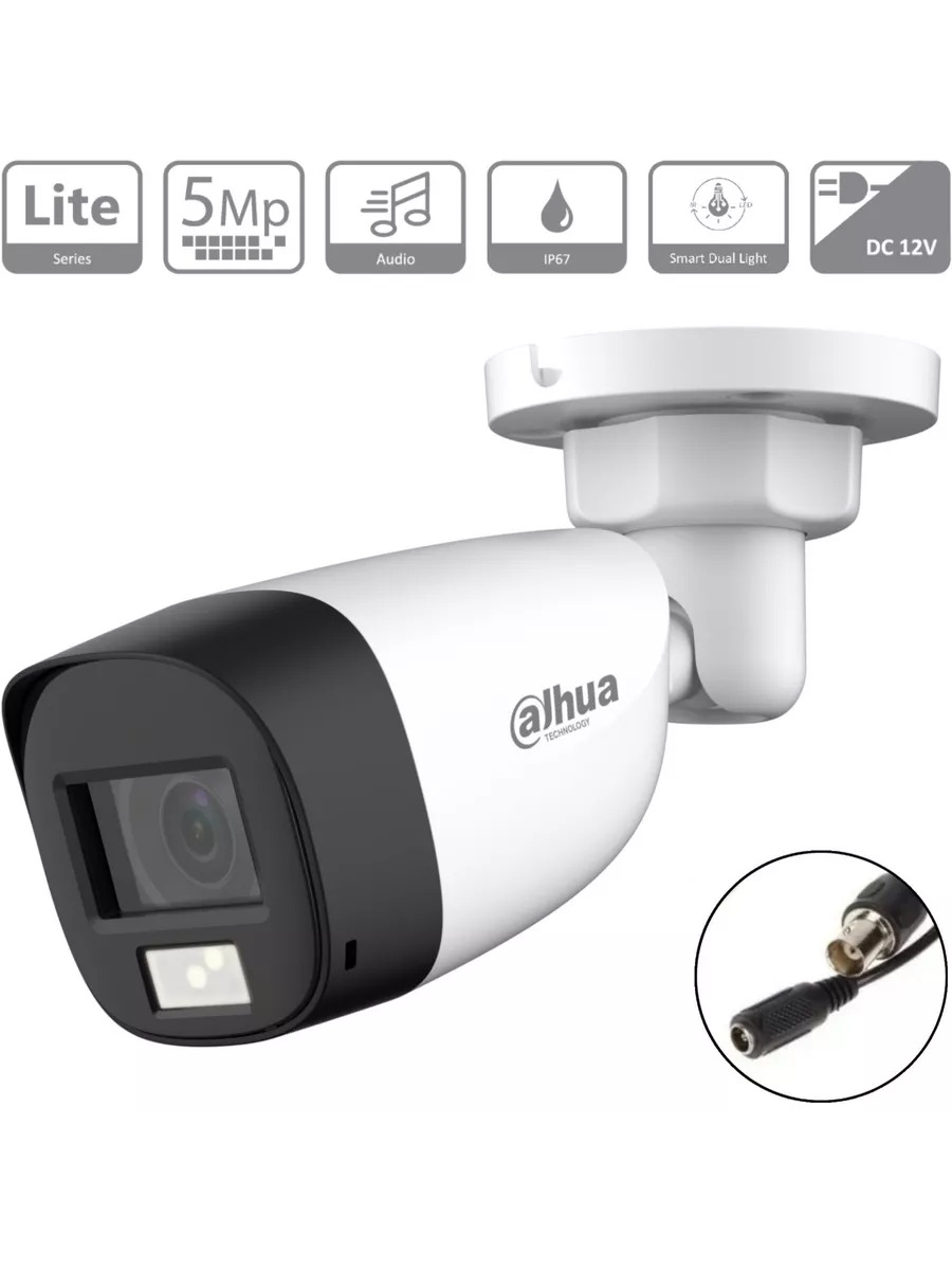 ВИДЕОКАМЕРА АНАЛОГОВАЯ УЛИЧНАЯ ЦВЕТНАЯ HDCVI 5MP 2.8mm без БП-12V/0.5A BNC-разъем DAHUA DH-HAC-HFW1500CLP-IL-A-0280B-S2 20m/2.8mm/S2 Встроенный микрофон