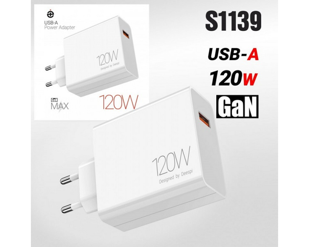 Адаптер питания сетевой 5.0V 3.0A USB*1 QC3.0 120W Deespi DE08 GaN белый