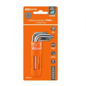 НАБОР КЛЮЧЕЙ TORX 7 ШТ. T9-T30 С ОТВЕРСТИЕМ (круглый держатель в блистере), CR-V сталь "Алмаз" TDM