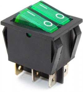 ПЕРЕКЛЮЧАТЕЛЬ УСТ.:28*22мм ДВОЙНОЙ 2-ПОЛОЖЕНИЯ С/Ф 6PIN 15A С ПОДСВЕТКОЙ ЗЕЛ+ЗЕЛ SWR 2101-1C3