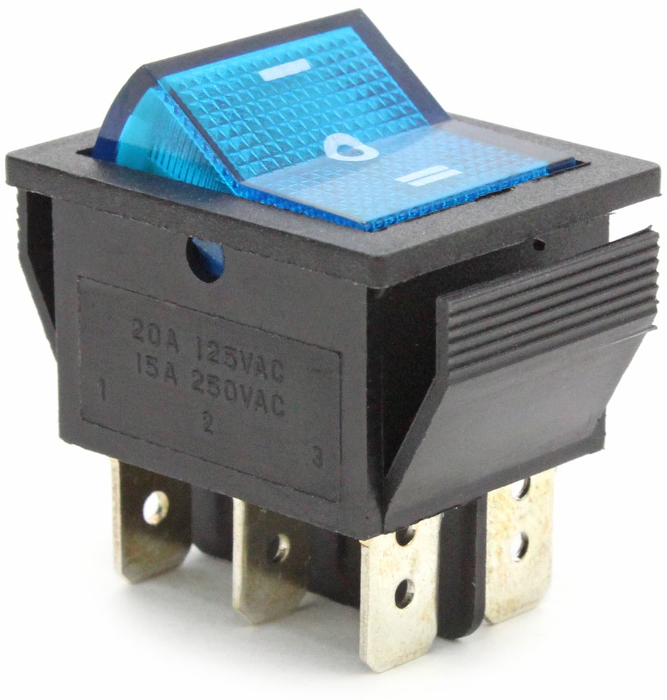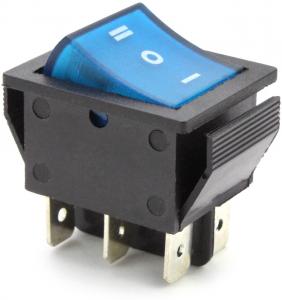 ПЕРЕКЛЮЧАТЕЛЬ УСТ.:28*22мм 3-ПОЛОЖЕНИЯ С/Ф 6PIN ON-OFF-ON 16A СИНИЙ SWR 203-1B6
