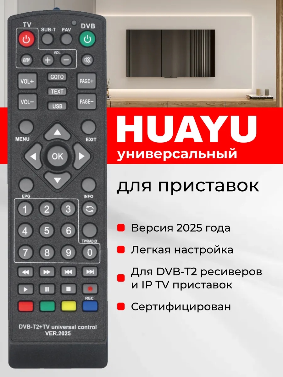 ПУЛЬТ ДУ DVB-T2 УНИВЕРСАЛ DVB-T2+TV VER.2025